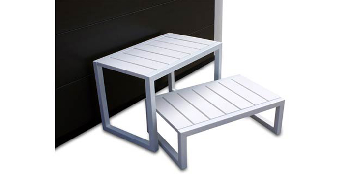 Diese elegante Leiter wurde mit den besten Materialien für eine exklusive Ausführung entwickelt. Sie kombiniert Edelstahl mit Solid Surface-Stufen, was für ein unübertreffliches Aussehen sorgt und sich ausgezeichnet mit Spas der Ausführung DESIGN LINE kombinieren lässt. Sie wird in zwei getrennten Teilen geliefert, die nach Bedarf kombiniert werden können.