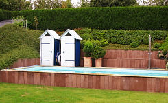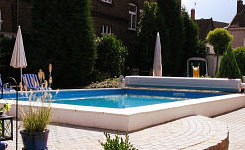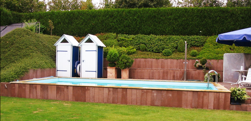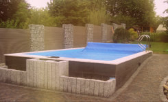 Bei diesen Schwimmbecken handelt es sich um gemauerte oder betonierte Beckenkörper, die mit einer 1,5mm gewebeverstärkten Folie (Alkorplan 2000/3000) ausgekleidet werden.