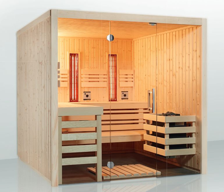 Durch die Kombination Sauna und Infrarotstrahler mit Tiefenwärme genießen Sie ein außergewöhnliches Wohlfühlvergnügen in Ihrer Panorama Sauna.