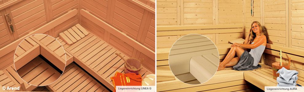 Und weil jede Arend-Sauna neben höchster Qualität auch durch gelungenes Design überzeugen will, sind Ihren Gestaltungsideen hinsichtlich Formensprache, Exterieur, Inneneinrichtung und Ausstattung keinerlei Grenzen gesetzt. Extravagante Einbaulösungen, Glas-fronten, praktische Ablagen oder Unterbank-heizsysteme sind nur einige der vielen Möglichkeiten, mit denen Sie Ihre Massivholzsauna zu einem ganz persönlichen Unikat machen können.
