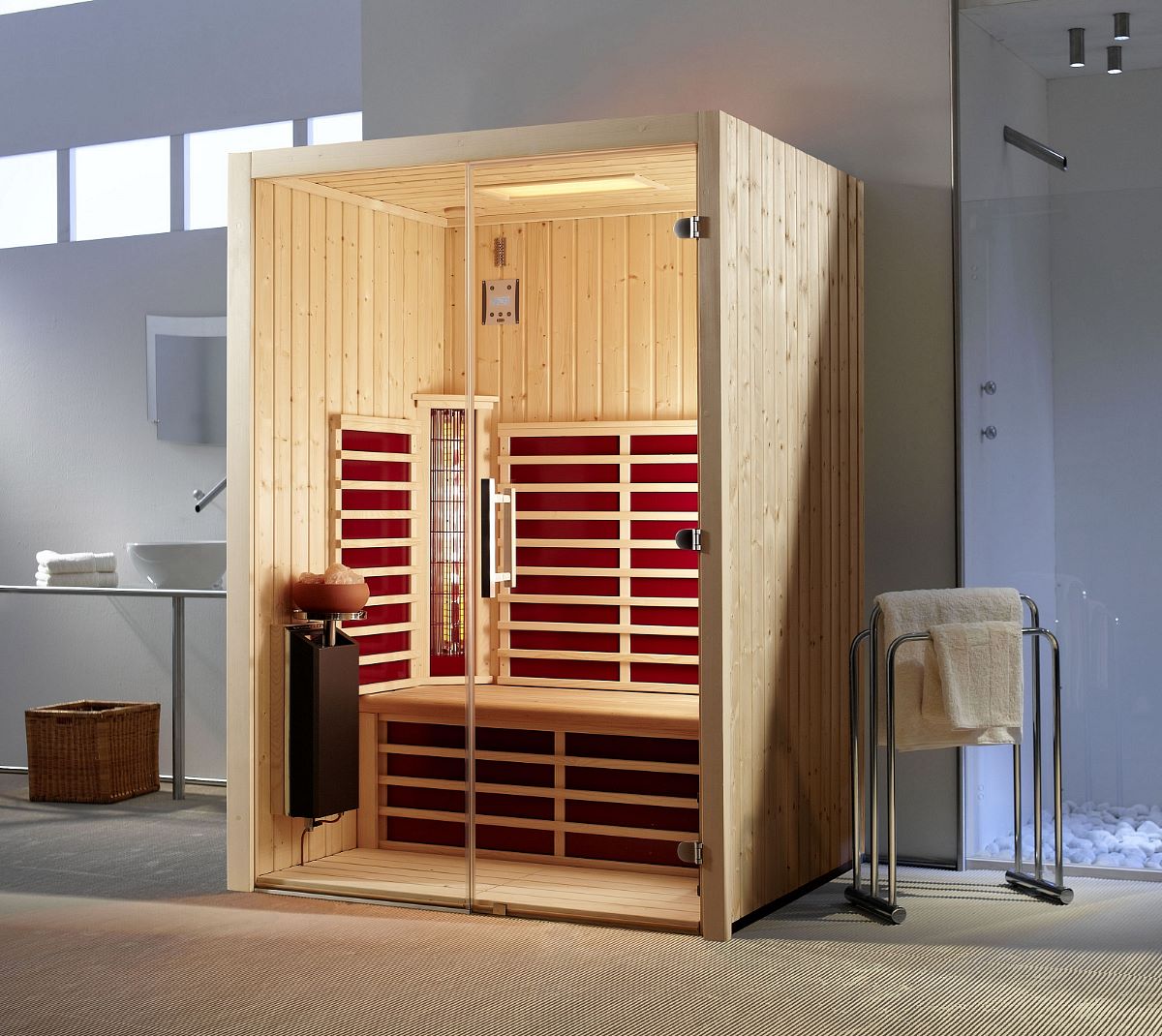 Die Kombikabine mit Flächenheizung, Infrarotstrahler und Salzverdampfer vereint die wohltuende Dreifachwirkung von behaglicher Wärme,