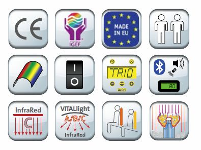 - Heizelemente: 4 Flächenheizelemente, 2 VITALlight-ABC-Strahler