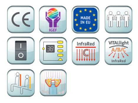- Heizelemente: 4 Flächenheizungselemente, 2 VITALlight-ABC-Strahler