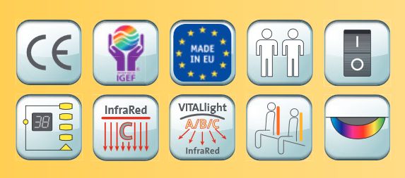 - Heizelemente: 4 Flächenheizelemente, 1 VITALlight-ABC-Strahler